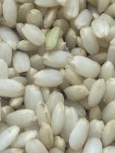- 一晩置くと、使用した玄米は籾殻は付いていないので、胚芽部分がプッと割れる程度に発芽しています。バットの水を切ります。